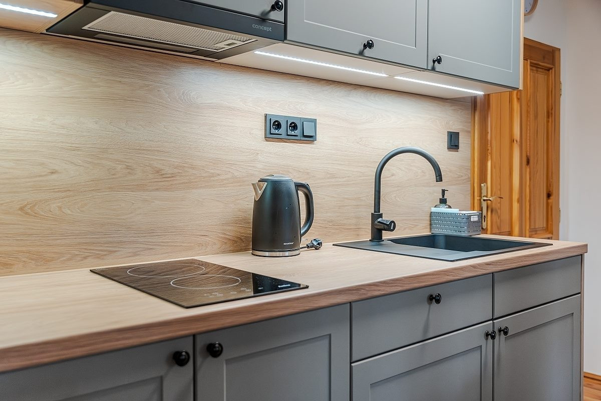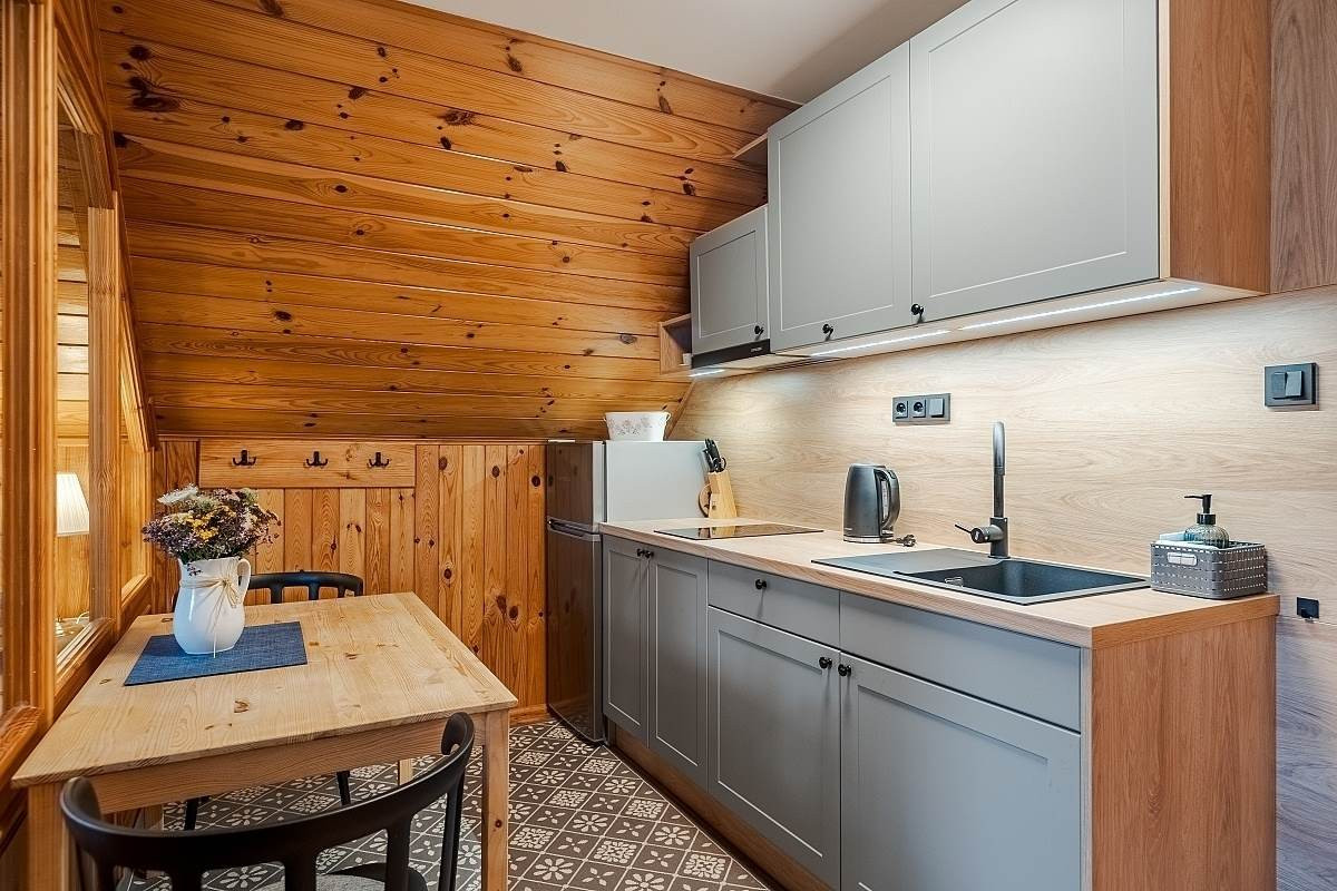 Prostorný útulný apartmán o celkové výměře 36 m², má dispozici 1+1. Je situovaný v prvním patře penzionu s výhledem na Obří vrch. Skládá se ze dvou místností: ložnice s obývacím pokojem je vybavena manželskou postelí a samostatným lůžkem, aby si každý nocležník dopřál kvalitní spánek. V obývací části pokoje si můžete užít příjemné posezení. Ve vedlejší místnosti pak najdete vybavenou kuchyni s jídelním stolem. Apartmán má vlastní koupelnu se sprchovým koutem a toaletou.
